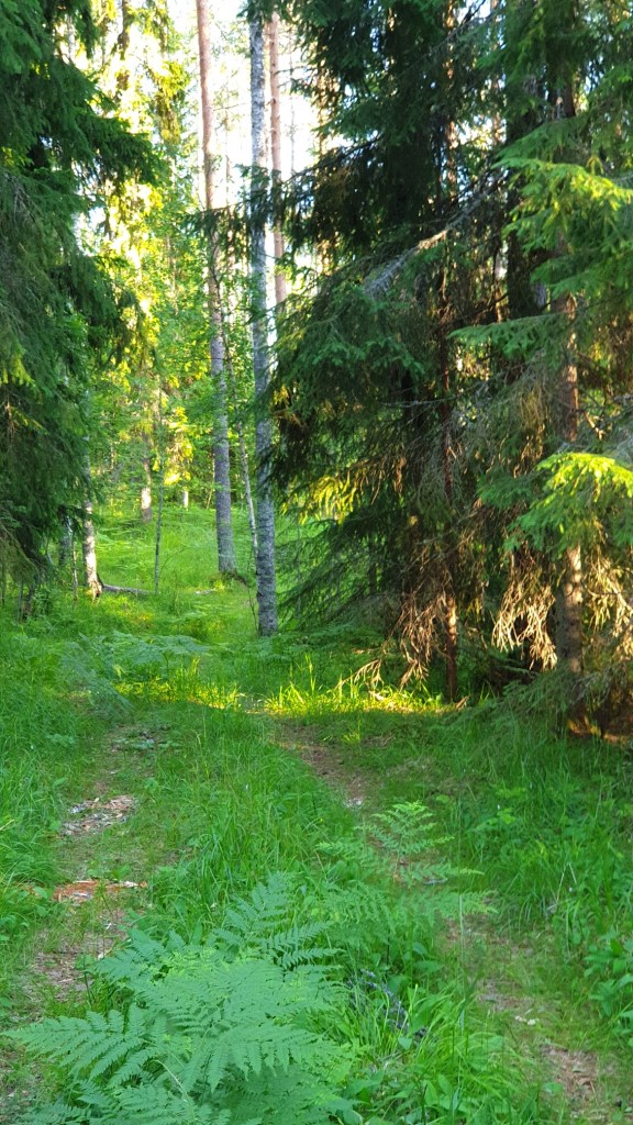 Huomaamattoman sivutien huomaamattomassa reunassa oli huomaamaton kyltti. Kyltin vierestä lähti huomaamaton polku. Polku oli joskus ollut autotie, mutta nyt tuskin enää ajettavissa. Hämärä kuusimetsä harveni hiljalleen rinnettä ylöspäin kulkiessa, ja vähitellen männyt ja niiden välistä pilkottava valo valtasivat ympäristön.