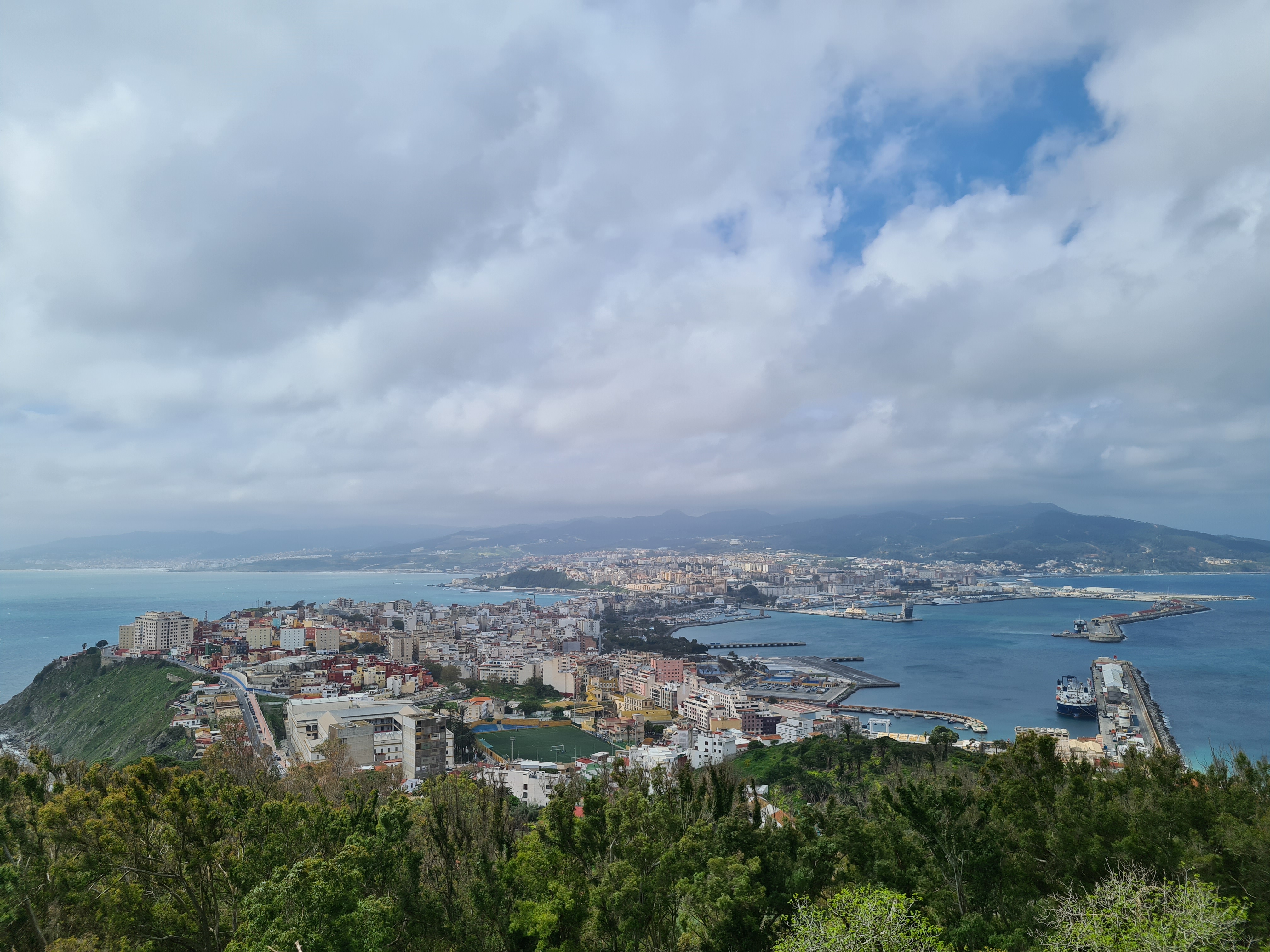 Kaupunki on kaunis ja sijaitsee niin kapealla kannaksella, että joidenkin katujen molemmissa päissä pilkottaa meri. Kannaksen toisessa päässä on Afrikka ja sen katkaisee vanha vallihauta. Kannaksen toisessa päässä on Monte Hacho, se toinen Herakleen pylväs. Sen huipulla on bysanttilaisten rakentama linnoitus, jonne johtaa mutkitteleva ja kuoppainen tie. Muualla Espanjassa linnoitukseen olisi järjestetty maksullisia opaskierroksia sekä tyylikäs viinibaari. Täällä linnoitukselle johtava tie päättyy lukittuun porttiin.